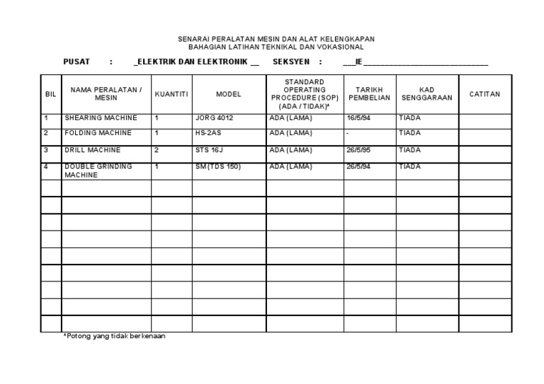 Senarai Peralatan Mesin Dan Alat Kelengkapan Pdf